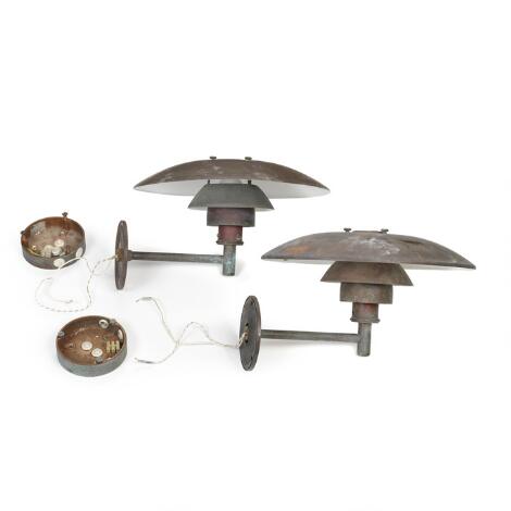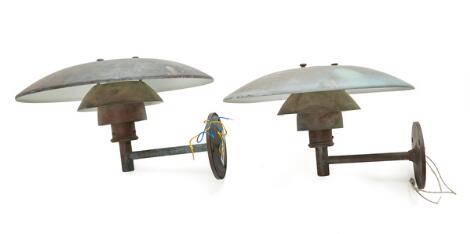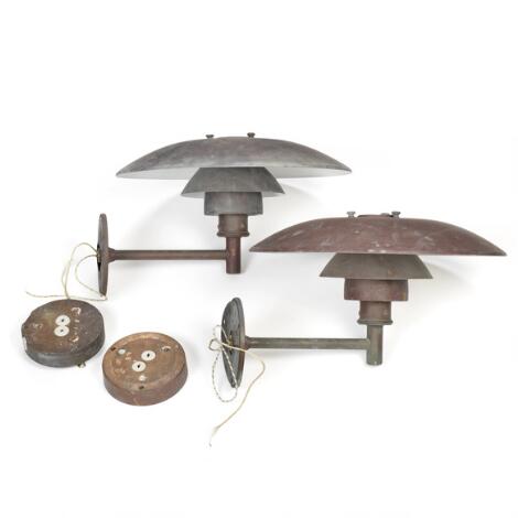 332/55LyngbyPoul Henningsen: "PH 4,5/3". A pair of patinated copper outdoor wall lamps. (2)