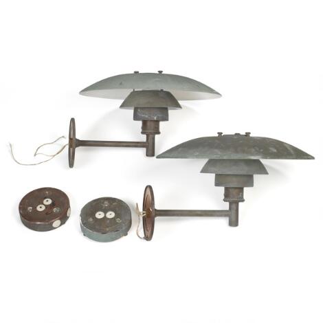 332/15LyngbyPoul Henningsen: "PH 4,5/3". A pair of patinated copper outdoor wall lamps. (2)