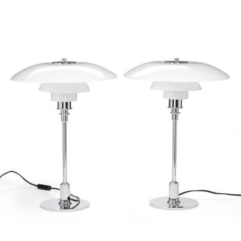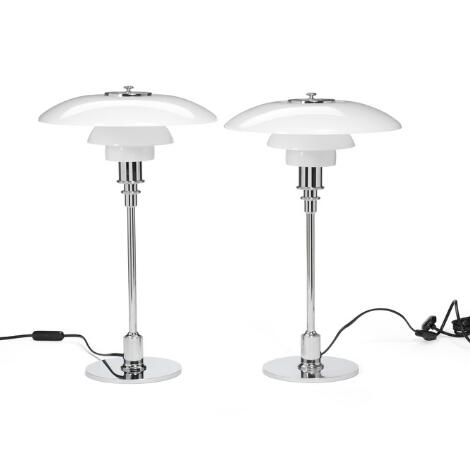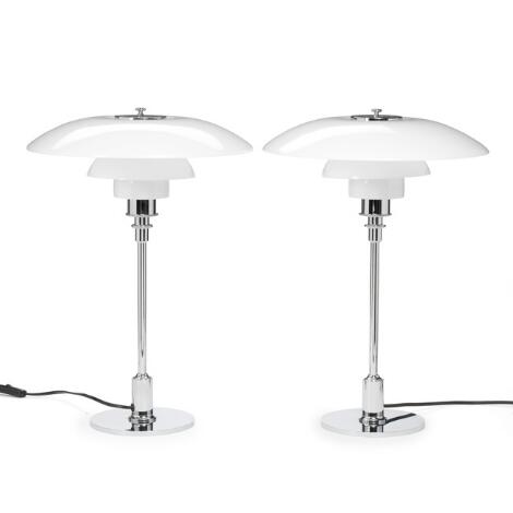 332/27LyngbyPoul Henningsen: "PH 3,5/2,5". A pair of chromed metal table lamps. Opal glass shades. (2)