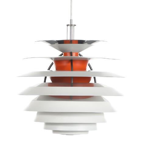 2551/632AarhusPoul Henningsen: "Contrast". A pendant with white and orange lacquered metal lamellas. H. 45. Diam. 45 cm.
