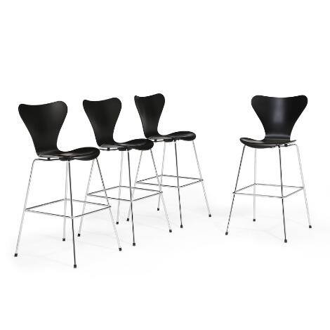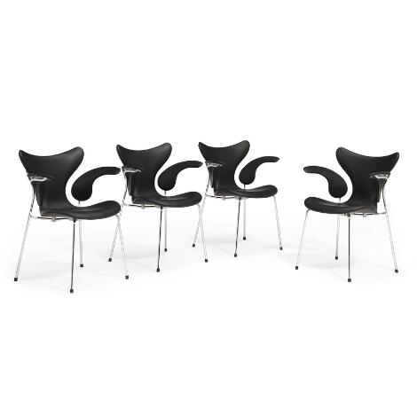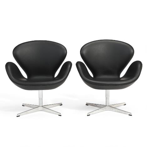 Arne Jacobsen dannede fortrop i udbredelsen af modernismen i Danmark. I dag står han som et markant navn i international designhistorie, og dengang kom han til at præge dansk møbeldesign fra slutningen af 1920’erne til midten af 1960’erne. Hans talent spænder vidt – fra industrielt design over møbelkunst til udformningen af komplicerede bygningsanlæg som fx Nationalbanken, Bella Vista og SAS-hotellet. Arne Jacobsen blev uddannet på Kunstakademiets Arkitektskole i København. Han adskilte sig på mange måder fra sin samtids møbeldesignere – ikke mindst fordi han ikke arbejdede så meget i træ, men i langt højere grad havde sin opmærksomhed rettet mod formstøbte materialer, som det ses i hans mest ikoniske klassikere som Ægget, Svanen og serien af funktionalistiske stabelstole som Myren og 7’eren. Disse industrielt fremstillede møbler var med til at sikre Arne Jacobsen et internationalt ry, og berømmelsen steg yderligere efter et foto af den i tiden stærkt omtalte engelske model Christine Keeler siddende i det bare ingenting på en 7’er-lignende stol gik verden rundt i starten af 1960’erne. 7’eren blev ikke alene den mest solgte af stabelstolene – den blev siden også en af de mest kopierede stole i verden. |