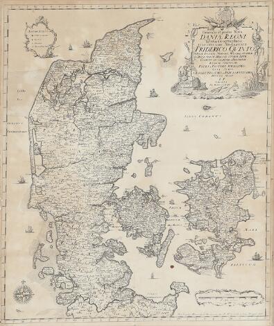 2546/168Erik Pontoppidan, Diderich Christian Fester, 18. årh.: Kort over Danmark. "Generalis et prorsus Nova Daniæ Regni..." 1763. Kobberstik. Lysmål 63 x 52,5 cm.