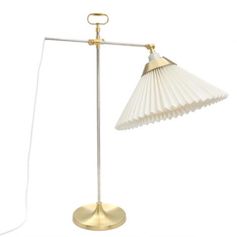 2545/966Kaare Klint, Esben Klint: “Teleskoplampe”. Bordlampe af stål og messing. Plisseret skærm. Model 319. Udført hos Le Klint. H. 73.
