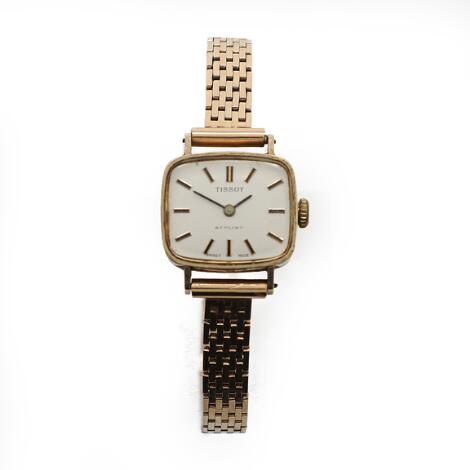 Tissot: Stylist af 14 kt. guld. Mekanisk værk med manuelt optræk. Lænke af 14 kt. guld. B. 20 mm.