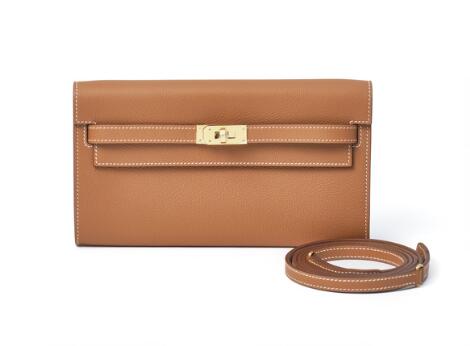 931/19LyngbyHermès: A "Kelly To Go" clutch of brown leather with gold tone hardware, detachable shoulder strap and two compartments. 2024.