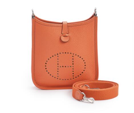 931/3LyngbyHermès: A "Mini Evelyne" bag of orange Clemence leather with palladium hardware. 2020.