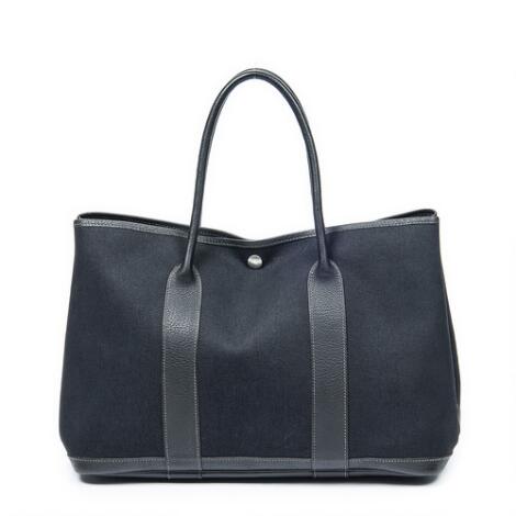 2551/9061LyngbyHermès: A "Garden Party" bag of brown canvas and black leather with palladium hardware. 2004.