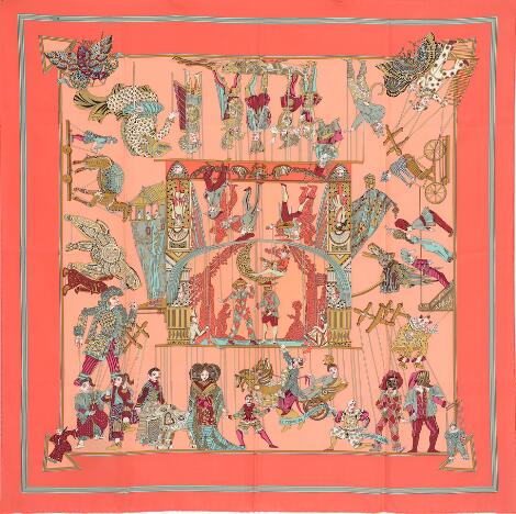 2550/9032LyngbyHermès: A silk scarf with motif "Le Temps des Marionnettets" by Annie Faivre. App. 88 x 88 cm.