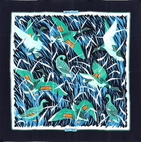 2550/9107LyngbyHermès: A silk scarf with motif "Cols Verts" by Christiane Vauzelles. App. 88 x 88 cm.