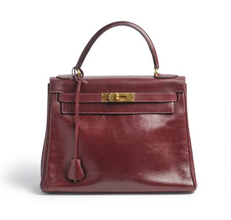 2550/9038LyngbyHermès: A "Kelly 28" bag of burgundy leather with gold tone hardware, short handle and tree interior pockets.