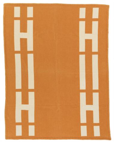 2550/9031LyngbyHermès: A beige/orange blanket of presumably wool wtih logo motif. App. 110 x 145 cm.