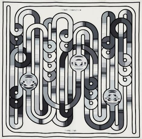 2551/9068LyngbyHermès: A silk scarf with motif "Melodie Chromatique" by Virginie Jamin. App. 87 x 87 cm.