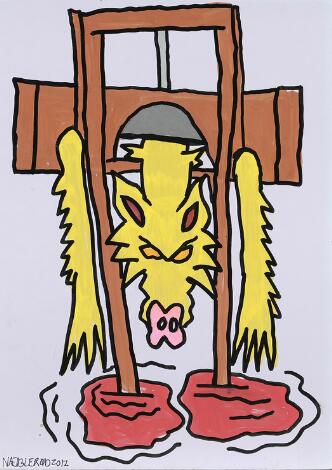 Frederik Næblerød arbejder med alt fra tegning, keramik, maleri, fotografi, collager og installationer. Spontanitet og inspiration er altafgørende for samtidskunstneren. Hans kunst er umiddelbar og let at forstå. Næblerød forvandler med sin endeløse energi alle indtryk til ekspressionistiske kunstværker. Og Kombinationen af tempo og talent er hans kendetegn. Energibundtet Næblerød er altid i gang. Han maler fisk så store som hvaler, kæmpekondomer, rødøjede ånder, insekter, firben, kattedyr med drilske grin og store væskende brystvorter.  Næblerød skaber også totemlignende masker med strithår eller søjler i keramik, og det foregår ved at klaske lerklumper sammen og bokse på det, til det gør ondt i hånden. Næblerød maler med alt på alt; Maling, lim eller polyfilla tværes ud på spejle, træplader, bagsiden af lærreder eller husvægge. Han benytter fingrene, pensler, en kasket, eller hvad han ellers lige har ved hånden.