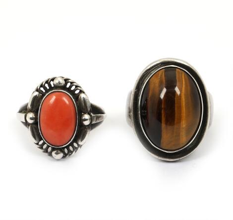 2551/1252LyngbyGeorg Jensen: En koralring og en tigerøjering af sterlingsølv. Dessin 1A og 46A. Str. 50. (2)