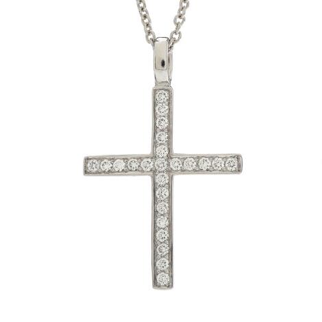 2551/1330AarhusGeorg Jensen: Diamantvedhæng i form af et kors samt halskæde af 18 kt. hvidguld. L. 2,2 og 39,5-45 cm.