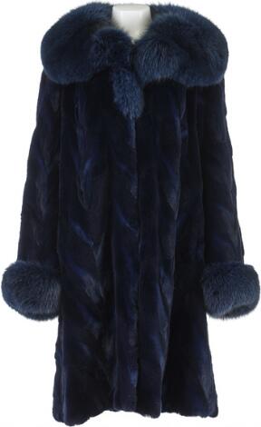 A fur jacket of blue dyed mink fur and partly imitated fur, with a collar of fox fur. Size app. 38-40.