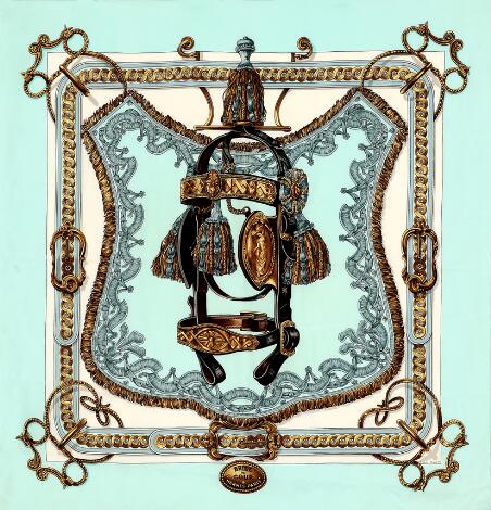 Hermès: A silk scarf with motif "Bride De Cour" by Françoise de la Perriere. App. 90 x 90 cm.