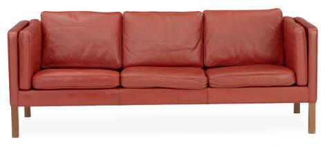 Børge Mogensen: Three seater sofa with cherry wood legs. Upholstered with red leather. L. 207 cm.