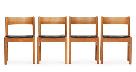 Jørgen Bækmark: A set of four oak chairs, upholstered with black leather. Model J 72. Manufactured by FDB. (4)