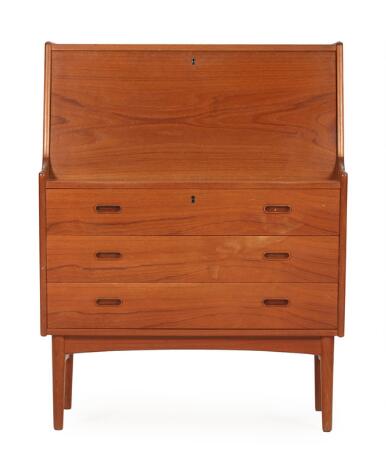 Arne Wahl Iversen: A teak secretaire, front with three drawers and writing leaf. Manufactured by Vinde Møbelfabrik. H. 109. B. 85. D. 44 cm.