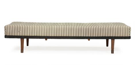 Danish furniture design: Daybed with dark stained beech legs, loose cushion upholstered with striped wool. 1940s. L. 186 cm.