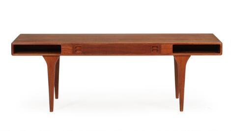 Johannes Andersen, ascribed to: A teak coffee table with drawers. Manufactured by C. F. Christensen. 1960s. H. 50. L. 150. W. 60 cm.