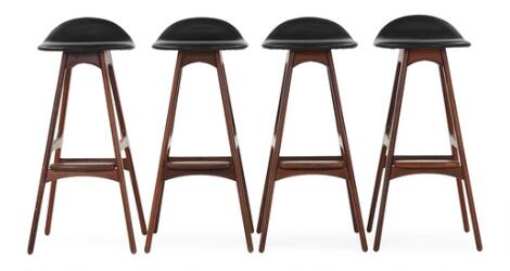 Erik Buck: Four rosewood bar stools. Seat upholstered with black artificial leather. (4)