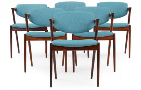 Kai Kristiansen: Set of six rosewood armchairs. Upholstered with turquoise wool. (6)
