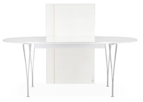 Piet Hein, Bruno Mathsson: "Superellipse". Dining table with steel legs, extension and two extra leaves. (3)