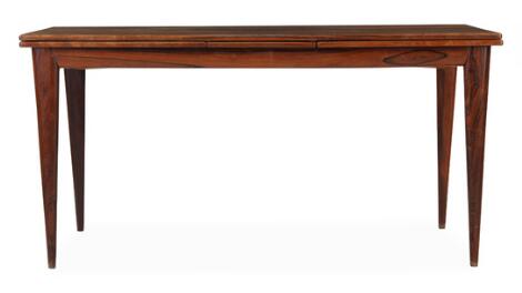 Niels O. Møller: Dining table of rosewood with extension. H. 74 cm. L. 150/266 cm. W. 100 cm.