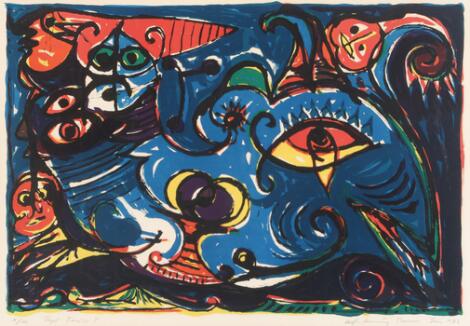 Carl-Henning Pedersen: “Fugl Føniks I”. Signed. Lithograph in colours. Visible size 55 x 79 cm.
