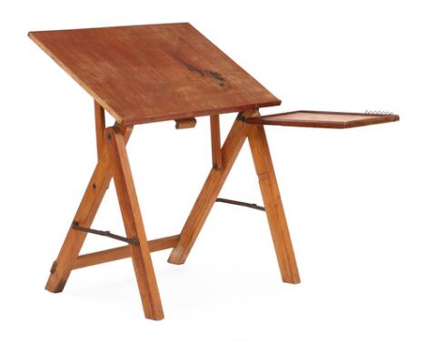 Danish furniture design: Mahogany and pine wood drawing table. Adjustable top and side leaf.