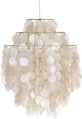 Verner Panton: "Fun 1 DM". Steel pendant with multiple hanging rows of mother-of-pearl discs.