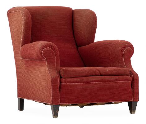 Danish cabinetmaker: Easy chair with stained beech legs. Upholstered with red fabric.
