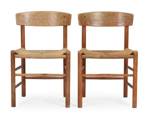 Børge Mogensen: "The People's Chair". A pair of patinated oak chairs with woven paper cord in seats. Model J 39. Manufactured for FDB. (2)