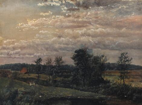 2545/261Dankvart Dreyer, efter, 19. årh.: "Landskab med en mose". Usigneret. Olie på lærred. 31 x 40.