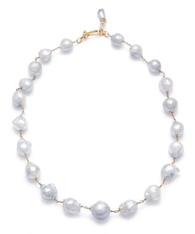 2545/1212Natascha Trolle: Perlehalskæde af 14 kt. guld prydet med talrige barokke Tahiti kulturperler. L. 40-41,5 cm.