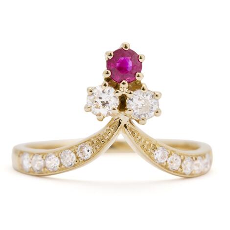 2545/1196Rubin- og diamantring af 18 kt. guld prydet med facetslebet Burma rubin samt talrige diamanter. Str. 53,5.