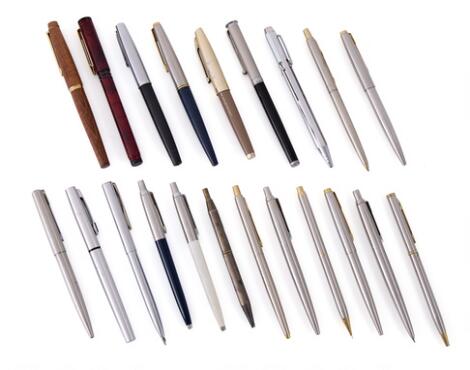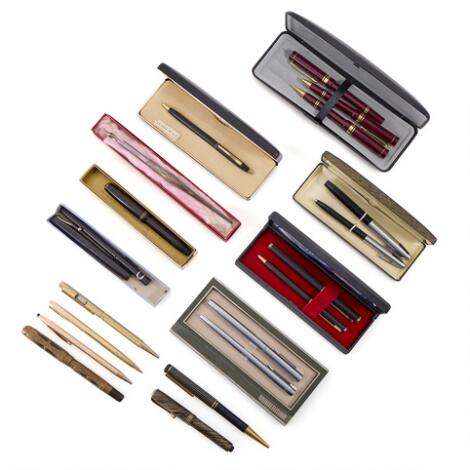 2545/1244Parker, Pilot m. fl.: En samling fylde- og kuglepenne samt trykblyanter, én med pennespids af 14 kt. guld. (21)