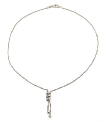 2545/1225Diamanthalskæde af 18 kt. hvidguld prydet med brillantslebne diamanter på i alt ca. 0.20 ct. L. 43,5 cm.