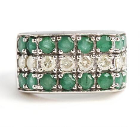 2545/1192Smaragdring af 14 kt. hvidguld prydet med talrige facetslebne smaragder og brillantslebne diamanter. Str. 55.