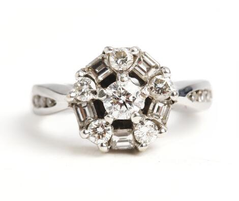 2545/1222Diamantring af 18 kt. hvidguld prydet med talrige brillantslebne diamanter på i alt ca. 1,20 ct. Str. 53.