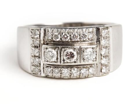 2545/1200Diamantring af 18 kt. hvidguld prydet med talrige brillantslebne diamanter. Vægt ca. 8,5 g. Str. 59.