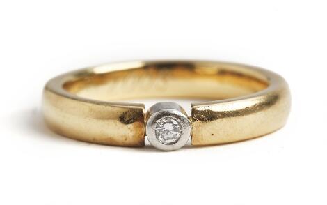 2545/1193Diamantring af 14 kt. guld og hvidguld prydet med brillantslebet diamant. Vægt ca. 6,5 g. Str. 57.