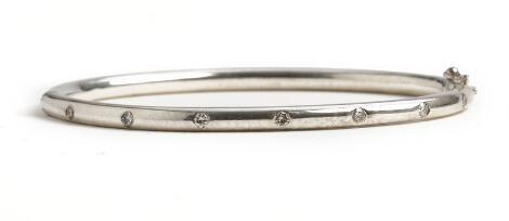 2545/1202Diamantarmring af sterlingsølv prydet med talrige brillanstslebne diamanter. B. 3,5 mm. Indre diam. 4,6 x 6 cm.