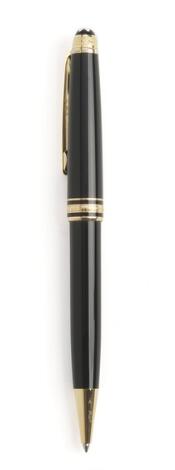 2545/1233Montblanc: Meister-Stück skrivesæt bestående af kuglepen og stiftblyant af sort resin med gyldne detlajer. L. 13,7 og 14 cm. (2)