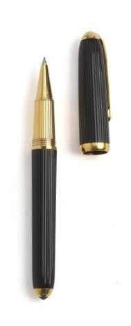 2545/1227Cartier: "Stylo Louis Cartier" kuglepen af riflet sort resin og forgyldt metal. C-logo på clip. L. 14,4 cm.