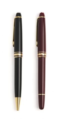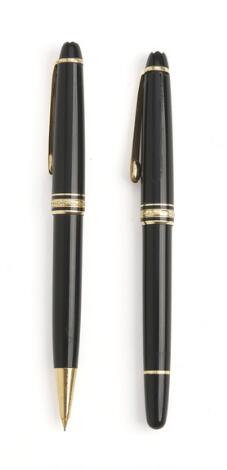 2545/1231Montblanc: Meisterstück skrivesæt bestående af kuglepen med tvist-funktion og fyldepen med nib af 14 kt. guld. L. 13,6 cm. (2)