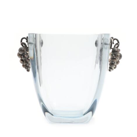2545/876Isspand af klart glas med monteringer af sterlingsølv i form af drueklaser. H. 15,5 cm.