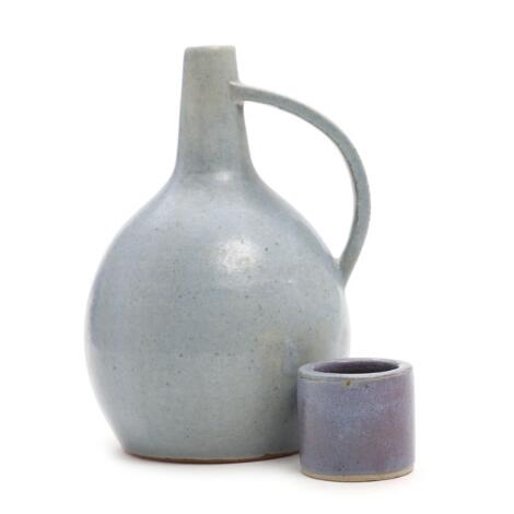 2545/827Christian Poulsen: Kande og vase af stentøj. Signeret CP og CP 1937. H. 18 og 4,3 cm. (2)